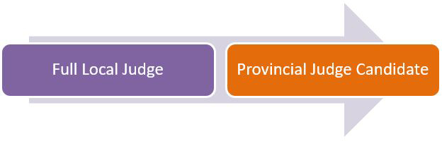 You must become a Full Local Judge to qualify as a Provincial Judge Candidate.